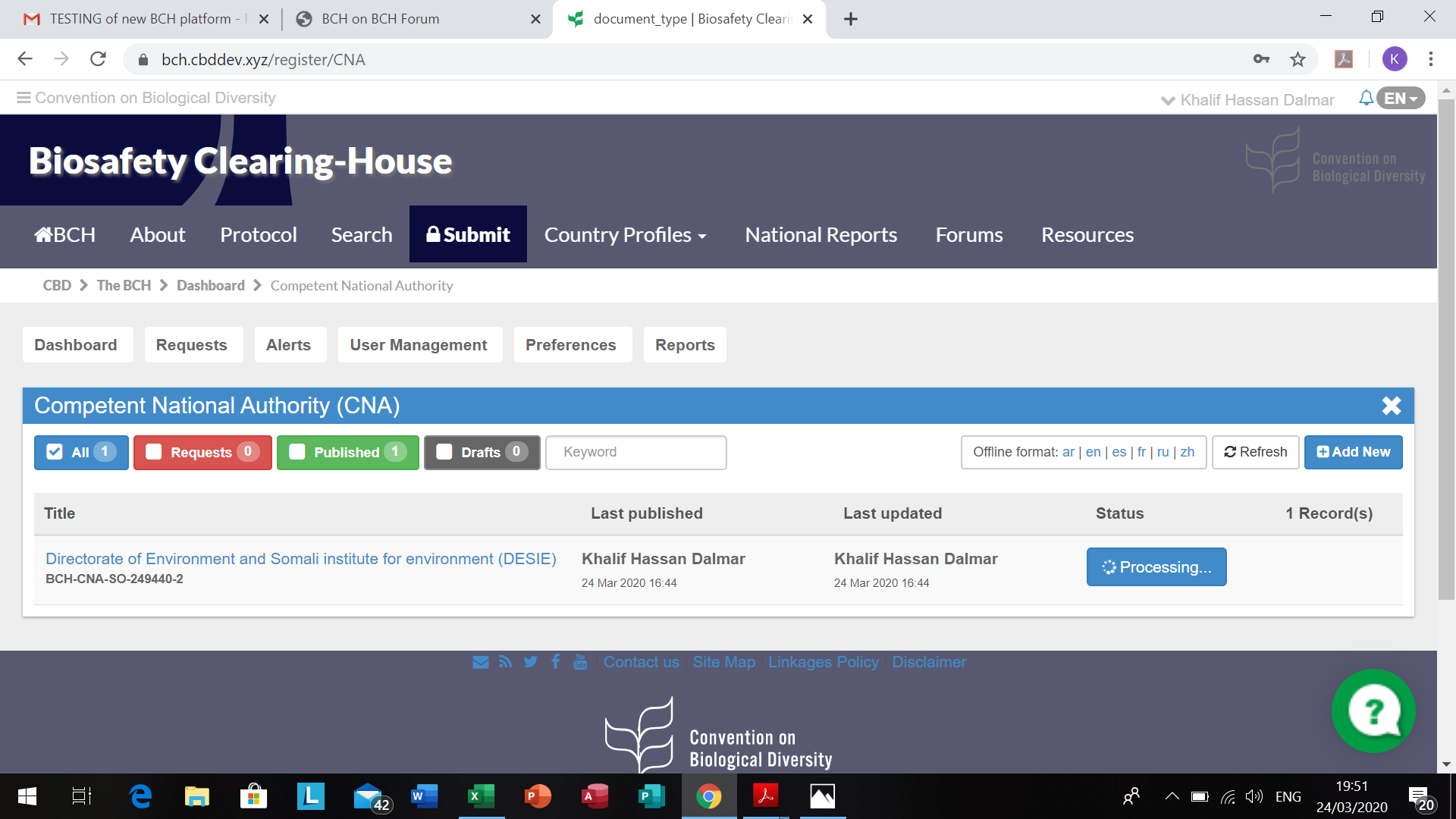 Dear Anastasia, We did enter new data on CNA, and it worked well, untill approval step. We were before logged as BCH user and as NFP BCH after, were correctly approving the information without problem. And we found easily old information for upload of old information and contacts. Best regards,