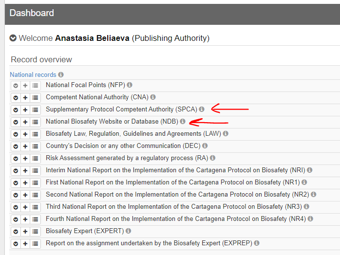 ASSIGNMENT: In National Records, create an publish a “Supplementary Protocol Competent Authority (SPCA)” and “National Biosafety Website or Database (NDB)”.