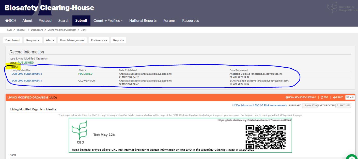 I found the process for creating an LMO to be very simple to follow; and the search for it after publishing also worked very well. Comparing records that are in the old and the new BCH platform; the new one is much clearer and easier to understand. This is particularly so for the unique identifiers for the elements in a record such as LMO, gene constructs, parental organism etc. Thank you for all your hard work.