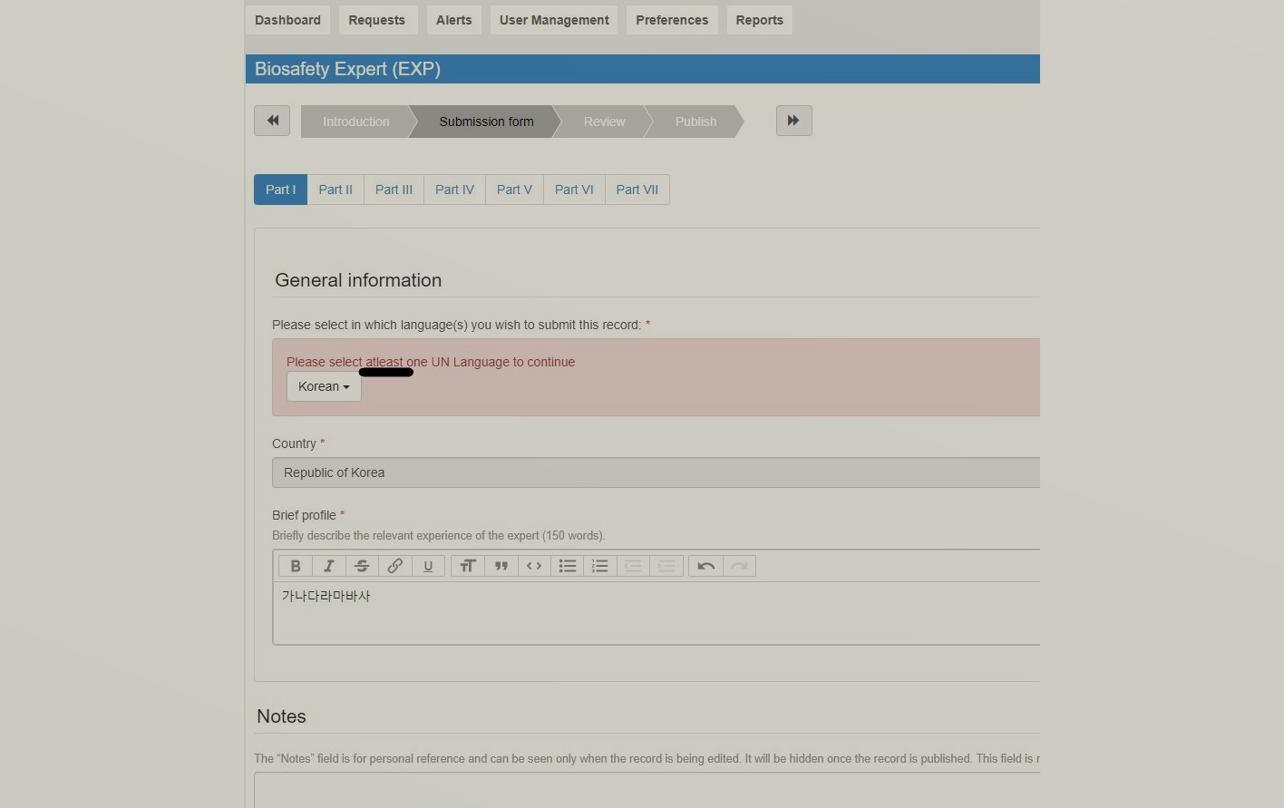 Dear Anastasia, I recently created a record on Biosafety expert and these were my observations: 1. Expert’s nationality failed to load. 2. When I searched for my record, it was listed but when I tried to open the record, the record was not opening.