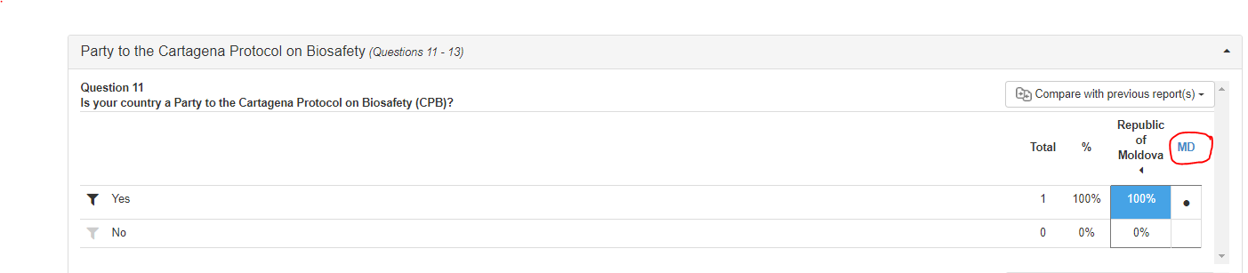 The Report Analyzer is now active and working in the preview version of the new BCH. You can access it by selecting the National Reports on the top bar (please see image below) or here is the direct link: https://beta.bch.cbd.int/en/reports.