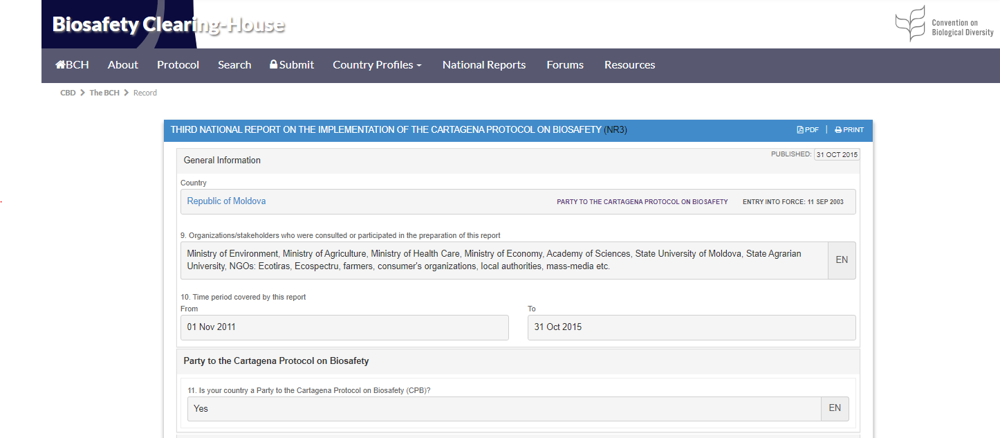 As I have just submitted the Moldovan IV National Report to the CPB via the BCH online form, I would like to come with some of my comments regarding the usefulness of the new platform of the BCH.